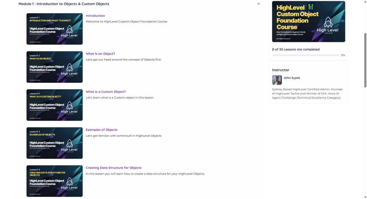 Probably the only Advanced Custom Object Course for GoHighLevel currently in the market